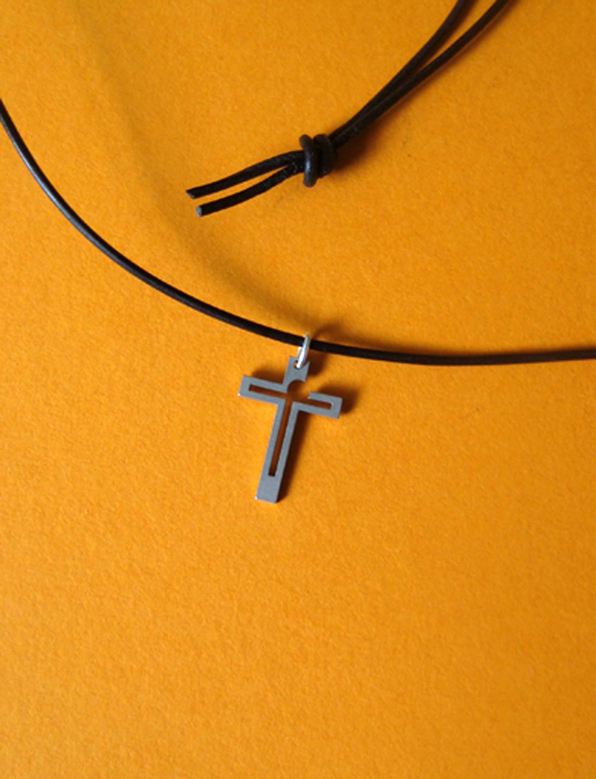 Das Auferstehungskreuz gibt es in zwei Varianten: Entweder aus 1,5 mm Edelstahl gefertigt mit schwarzem, langem Lederband oder in der Schmuckversion aus 3 mm Edelstahl mit Kautschuk- oder Edelstahlband (beide mit Bajonettverschluss).