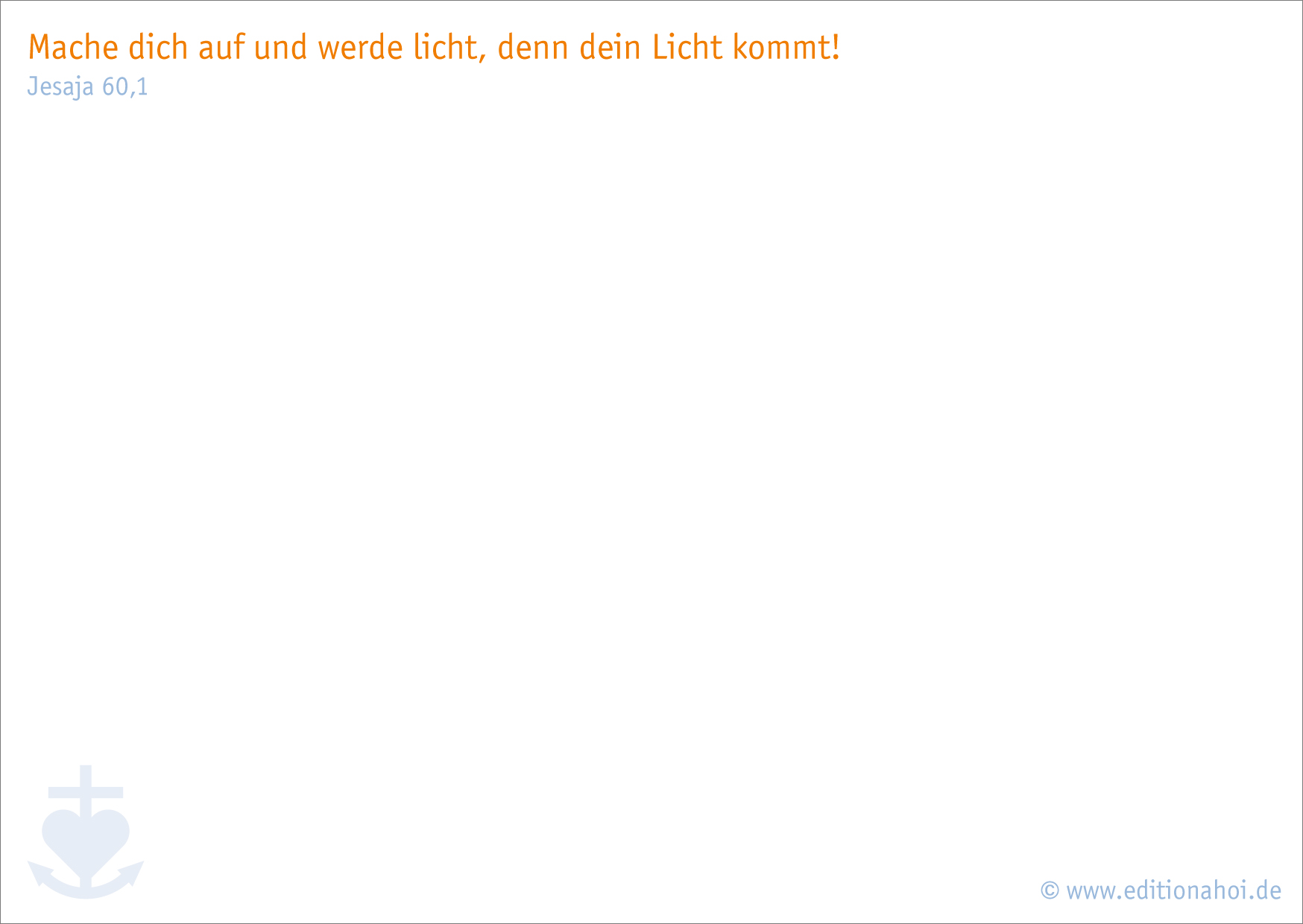 Auf der Rückseite steht jeweils der Satz: Mache dich auf und werde licht, denn dein Licht kommt!