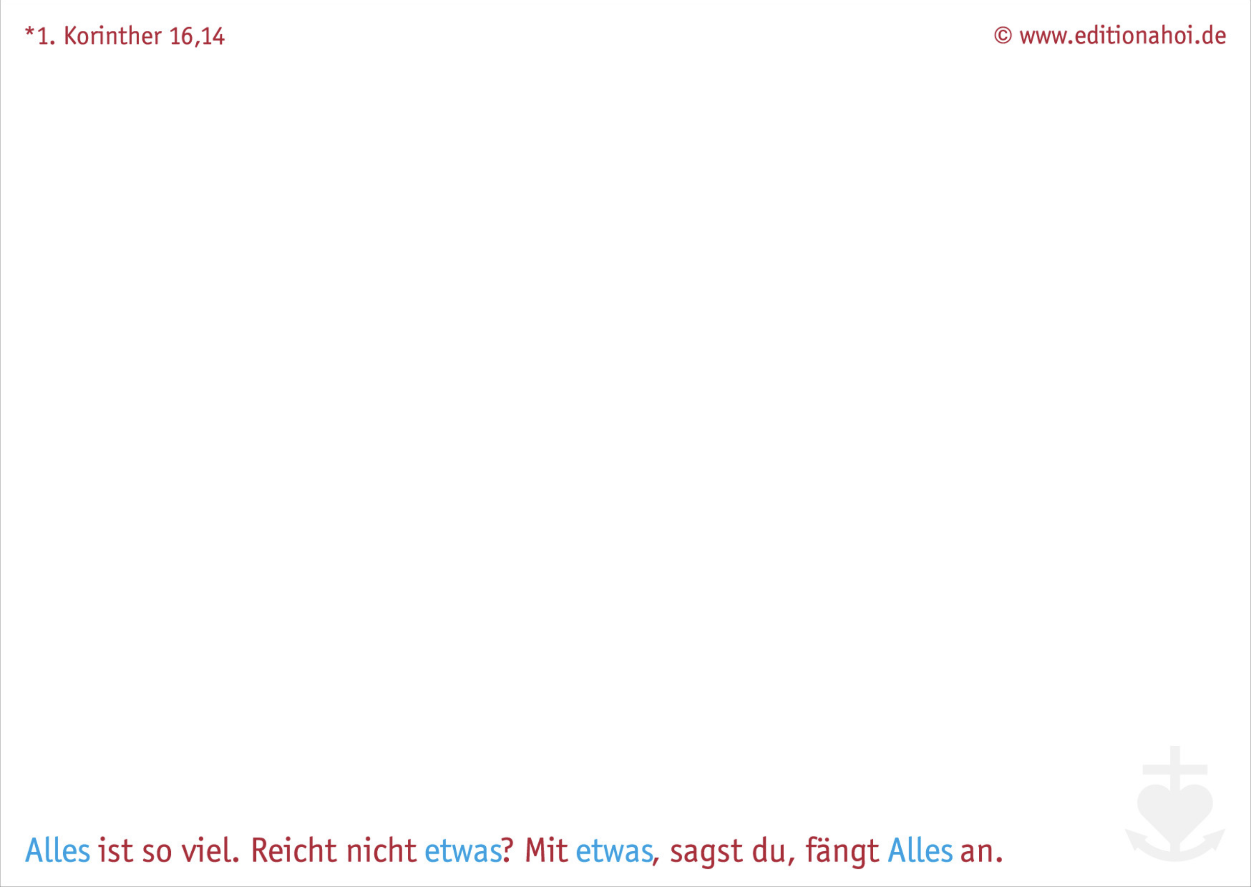 Alles, was ihr tut, das tut mit Liebe." 1. Korinther 16,14