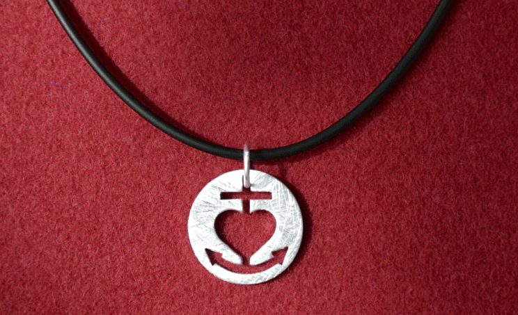 Seefahrer trugen es auf der Haut, wenn sie monatelang Wind und Wellen ausgesetzt waren. Es steht für Glaube, Liebe, Hoffnung. Das Herz verbindet mit den Liebsten zu Hause. Der Anker steht für die Hoffnung auf ein Wiedersehen. Und das Kreuz für das Vertrauen, unterwegs beschützt zu sein. Wir haben einen Anhänger draus gemacht. Zum Erinnern, zum Verschenken, zum Beschützen: Du bist nicht allein.