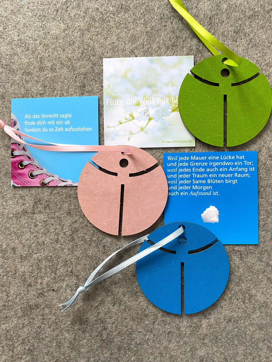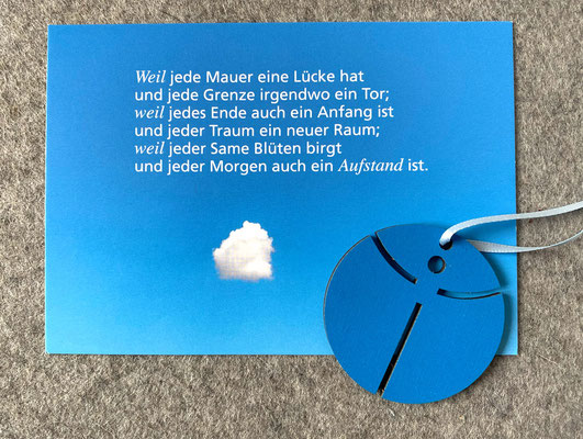 Es gibt sie einzeln mit Klappkarte oder als Dreier-Set im Schmuckkästchen inklusive passender Memory-Karten. Die Osterbotschaft zum Weitergeben: Weil jede Mauer eine Lücke hat. Steh auf! Flute die Welt mit Licht. Ideal zum Verschenken.